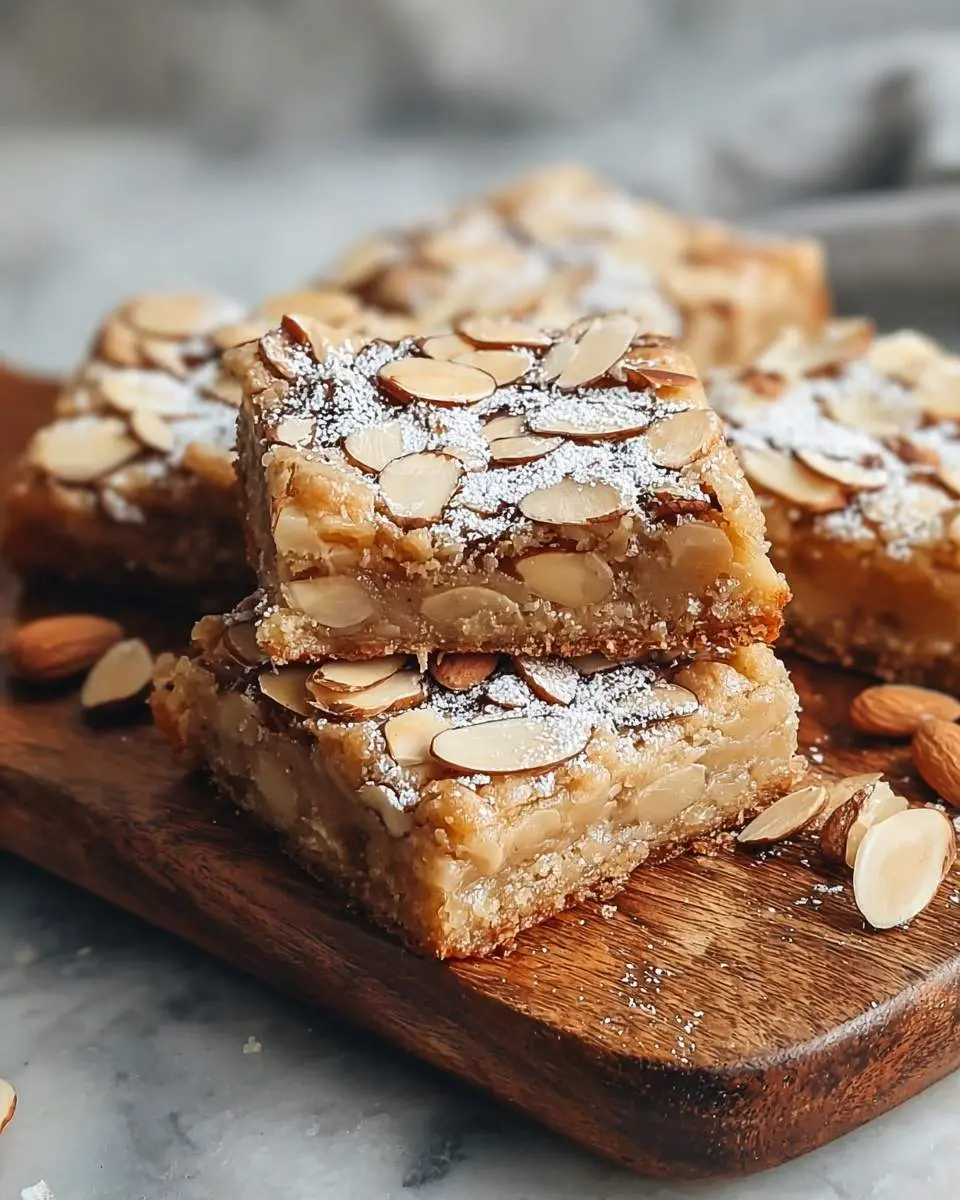 - My Secret Trick: My secret trick for achieving that beautiful golden-brown top and preventing the sliced almonds from burning is to tent the bars loosely with foil during the last 10-15 minutes of baking if they start to get too dark too quickly. It allows the center to cook through while protecting the delicate almonds on top.